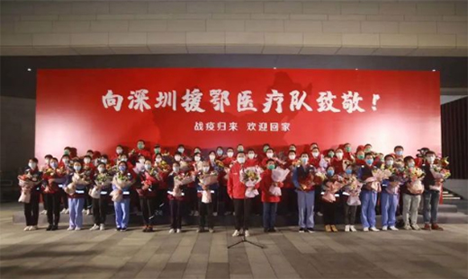 白衣做戰袍,慷慨赴荊楚。自2月9日,13名醫護人員組成的深圳首批支援湖北醫療隊出征,隨后半個月時間里,深圳先后再派出4支醫療隊共77名隊員,奔赴湖北武漢和荊州的抗疫一線。本次首先返回的是其中3支醫療隊,其中1支馳援武漢,2支馳援荊州,總計47人,深圳市委書記王偉中、市長陳如桂迎接并慰問隊員。據悉,隊員們回深后,將集中休養14天,再回家與家人團聚。