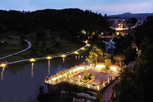 往年,市民到鼓嶺避暑,大都只能在白天活動,到了夜晚,鼓嶺只留下山路和民宿的燈光,很多景點沒有夜景照明。夜游鼓嶺的內容,僅僅是在一些露營點過夜。上周六晚,海都記者探訪鼓嶺幾個景點時發現,這里都已經完成了燈光升級。在柱里景區,有不少游客在湖畔的公共空間露營。湖畔的草地上,數十盞圓形燈的燈光形成螢火蟲般的效果。在露營的平臺上,采用的是洗墻燈照面,湖水倒映著平臺,讓湖面上出現了一顆明珠。