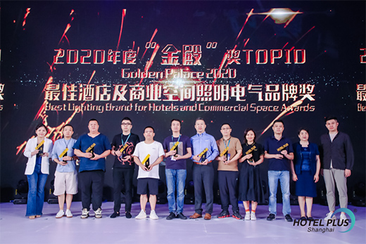 與展會同期舉辦的頒獎晚宴上,歐普照明憑借自身硬核實力,在眾多候選名單中脫穎而出,成功斬獲2020年度金殿獎“最佳酒店及商業空間照明電氣品牌獎”殊榮,獲得業內專業認可。歐普商業照明行業發展經理陸肅超先生作為品牌方代表出席了典禮并領獎。