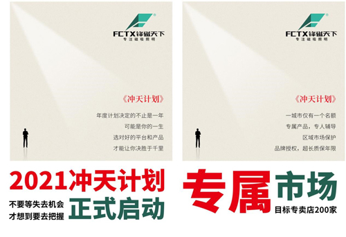 2021年,鋒磁天下正式啟動《沖天計劃》,以百萬補貼,尋找城市合伙人,讓專屬市場的目標專賣店增至200家!