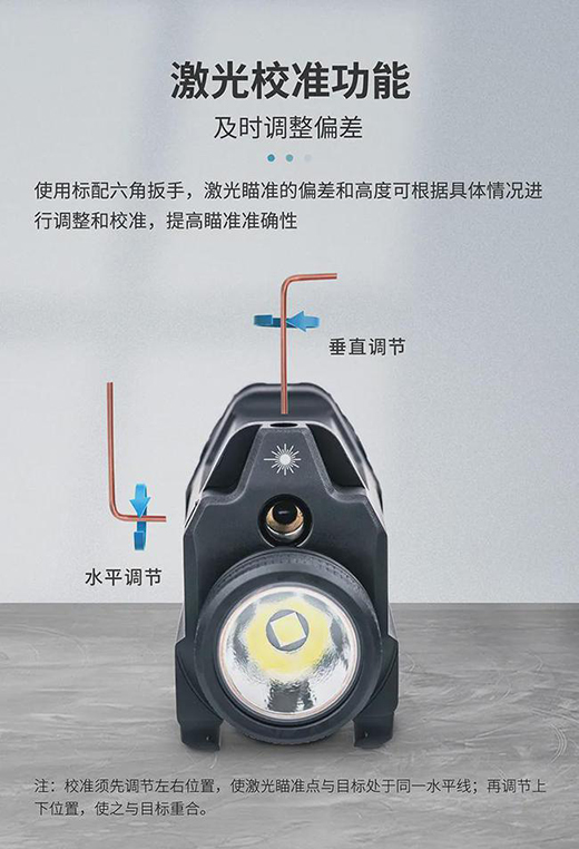 WL21G,白光照明+綠激光瞄準(zhǔn),白光清晰照明;高能量綠激光,抗雜光干擾,穿透力更強(qiáng),準(zhǔn)確瞄準(zhǔn);
