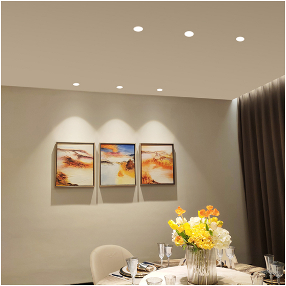 古集照明天悅系列天花燈、洗墻燈、筒燈……各種燈飾型號各司其職,共同造就豐富空間語境,營造出明暗層次、虛實對比的視覺感。不管是客廳、餐廳,還是臥室、書房,采用重點照明+間接照明結合的手法,筑造簡約大方的燈光環境,沒有了繁復花哨的水晶吊燈,天花板也沒有了滿天星一樣的燈光。古集巧用燈光與與建筑內飾的合理搭配,創造出有溫度、有情感、有故事的和諧空間。