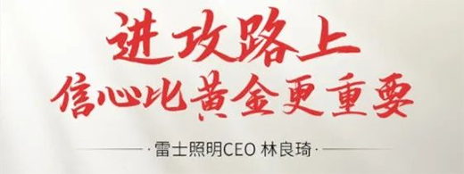 4月15日下午,雷士照明CEO林良琦特意給雷士員工、運營中心及經銷商寫了一封公開信,主題為《進攻路上,信心比黃金更重要》。