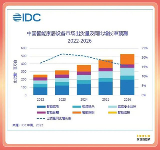 IDC預測,2023年之后,智能照明在智能家居中的規模占比將會逐步提高,預計到了2026年將有接近25%的規模占比。