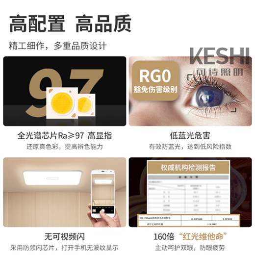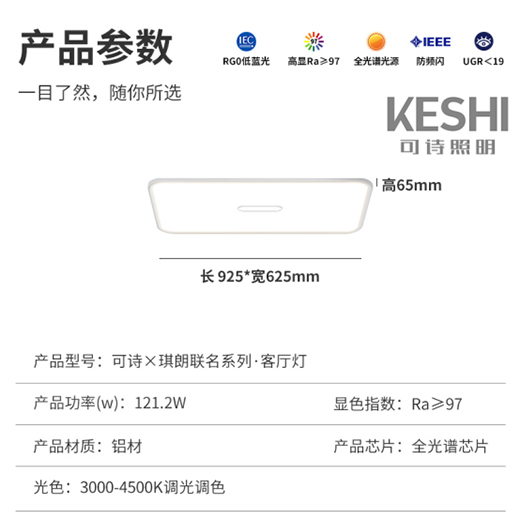 KESHI可詩照明與KingLong琪朗燈飾聯名的ALED全光譜護眼客廳吸頂燈現已正式上線,產品擁有ALED全光譜護眼、RG0低藍光、高顯指、防頻閃、強防眩、超薄超輕盈等多重優勢,襯您的品質之家剛剛好!