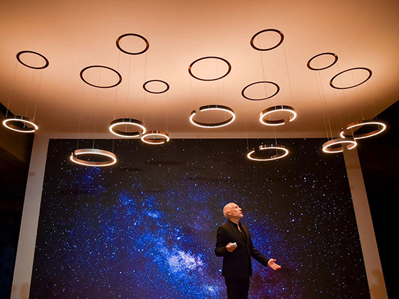 與如月光般夢幻輕盈的Luna系列一脈相承的Mito cosmo系列從浩瀚的宇宙銀河中擷取靈感,打開對光的想象大門,是Occhio又一前瞻性力作。備受矚目的Mito cosmo系列成為晚宴舞臺魅力四射的新亮點,與晚宴桌布陳的Gioia系列一同打造愜意愉悅的用餐氛圍。Mito cosmo系列燈具無縫嵌入天花板,通過調節燈具高度在聚光效果與柔光效果間絲滑轉換,依據場景空間需要用手勢自由地決定光線方向,調度光源。
