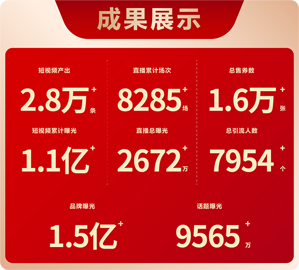 其中,相關話題下累計產出優質短視頻2.8萬+條,共斬獲超過1.1億+次的曝光量。直播板塊同樣表現亮眼,累計開展直播場次達8285+場以上,總曝光量突破2672萬+次,充分展現了品牌在直播營銷上的強大影響力。