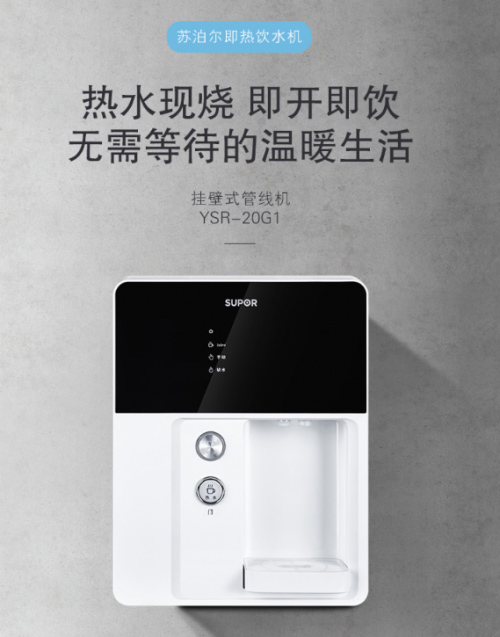 大氣優雅的蘇泊爾即熱飲水機YSR-20G1,讓喝水更有格調,愛上喝水的距離其實只差一個蘇泊爾掛壁式管線機。