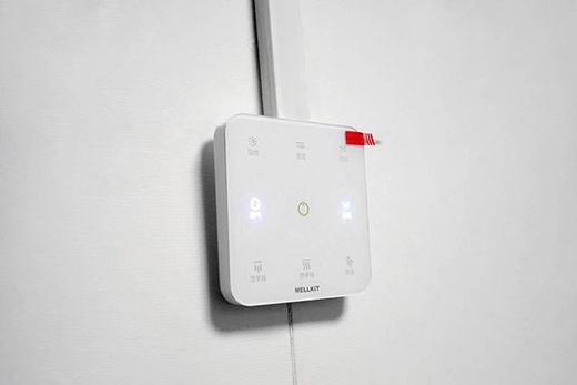 產(chǎn)品的遙控開關(guān)為有線的86型觸摸控制器,在控制器的背面有連接主機(jī)的接口。有線的控制器終究是比無線型的控制器要稍微遜色一點(diǎn),但是這完全不影響它的使用 。在控制器的界面上有9個(gè)可以觸控的功能,正中間是產(chǎn)品的電源開關(guān),四周分別環(huán)繞著取暖、擺頁、照明、除菌干燥換氣等基礎(chǔ)功能 。高光屏的智能觸摸控制,方便了我們的安裝與操控 。