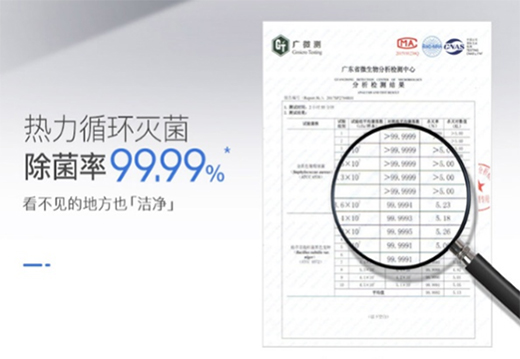 產品采取的75攝氏度的高壓水溫,進行反復沖洗,能確保餐具和腔體內的細菌得以有效消除。來自廣東微生物分析監測中心的監測報告,華帝洗碗機H5的熱力循環滅菌技術,其除菌率高達99.99%,最頑固的細菌均可得以消除。