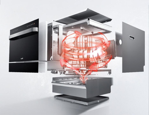 于是,具有洗消烘存功能的全效洗碗機誕生了,這就是華帝廚電推出的天鏡系列爆款、嵌入式洗碗機JWV8-H5型號(簡稱H5)。下面我們就一起來認識一下它是如何全效洗碗的。