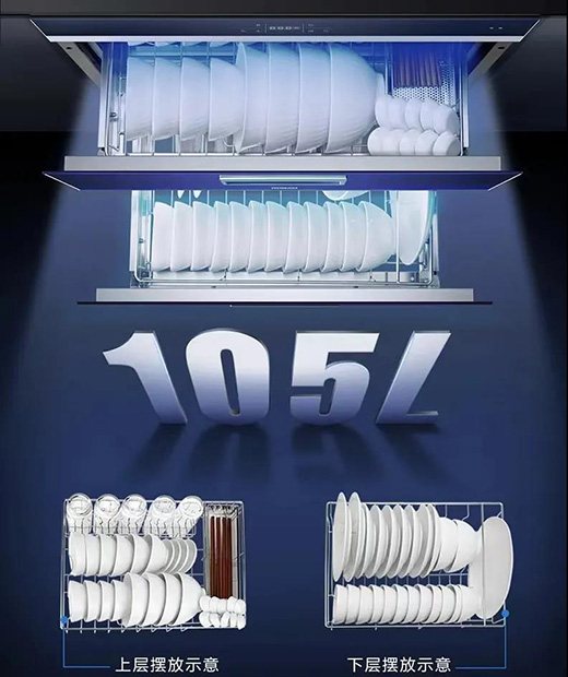 中式餐具紛繁多樣,面對(duì)多口之家擁有大量餐具需要擺放存儲(chǔ)的現(xiàn)狀,老板回形殺菌消毒柜(XC705)配備105L的大容量,可以一次性裝入8大類(lèi)不同形狀的餐具器皿,就連10寸的大盤(pán)也能輕松收納,滿足全家使用需求。