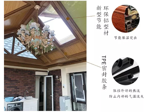 墨銘陽光房采用新型節(jié)能環(huán)保鋁型材,使得陽光房隔熱保溫性能優(yōu)越。同時采用TPE密封膠條,有效阻擋外部的熱流,并防止內部的氣溫流失,起到節(jié)能保溫的效果。