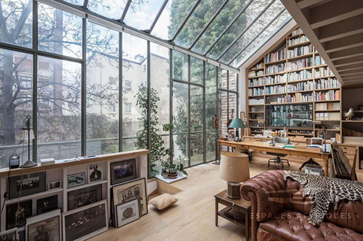 將其改造成書房,通透的大天窗,將光線援引進室內,在自然景致的變幻莫測下,與生活和工作為伴。疲勞或者閑暇時刻,站在室內或者躺在沙發上,看看景致,賞賞月,別提有多美了。
