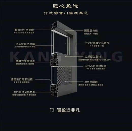 康盈門窗定制“靜音產(chǎn)品“”系列(斷橋窗、推拉門、平開門、折疊門、陽光房)讓你精心享受生活,靜享舒適品質(zhì)。