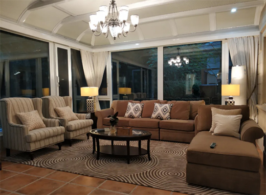 無論何等功能的陽光房,都離不開良好的通風,天窗一定要有,方便空氣循環的同時還可以在冬天的時候防止冷凝現象,除了天窗,更要選擇抗風壓性及保溫隔熱功能高的門窗,陽光房上的窗戶可不能馬虎,如果選取不同的廠家制作,可能契合不好而導致各種意外頻發!