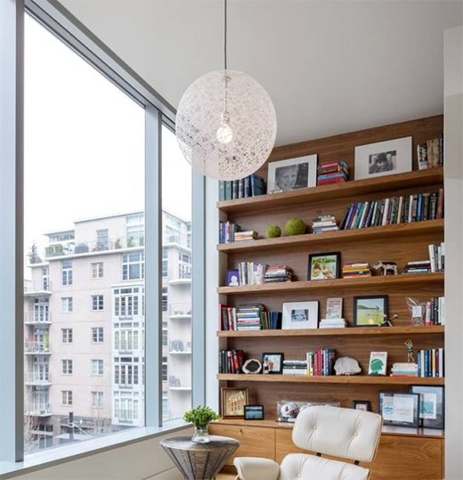常見的兩居室,很難配置書房,此時便可以將陽臺利用起來,設計一處優雅安靜的書房,在陽光明媚的午后,一杯咖啡,一本小說,靜靜感受時間的悄然流逝。對于整日疲于奔波忙碌的都市人們來說,這樣的午后不失為一種美的享受。
