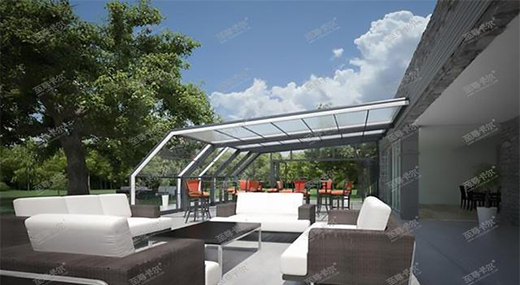 除了上面所說的,聚碳酸酯板陽光房相比比玻璃陽光房,還有個(gè)最突出的特點(diǎn)就是能夠智能伸縮折疊,隨意改變陽光房面積,實(shí)現(xiàn)室內(nèi)外空間自由轉(zhuǎn)換,封閉時(shí)能夠遮風(fēng)擋雨,露臺(tái)花園里的花草不會(huì)受到破壞;開啟時(shí)可以吹吹風(fēng),呼吸新鮮空氣。