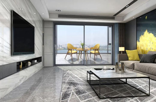 放眼望去,窗外幾里的美景似乎只有一步之遙,極窄邊框設計的推拉門似有似無,還可縱向延伸至3m,呈現超廣角視野,絲毫不影響賞大片的視覺感。簡單大氣的幾抹灰框,低調優雅,看似輕佻,5.0mm的壁厚卻撐起了客廳的安全屏障,即使安裝在戶外也無懼風雨。壁畫及抱枕錯落的黃色點綴,讓沉穩平靜的客廳多了幾分靈動與生氣。
