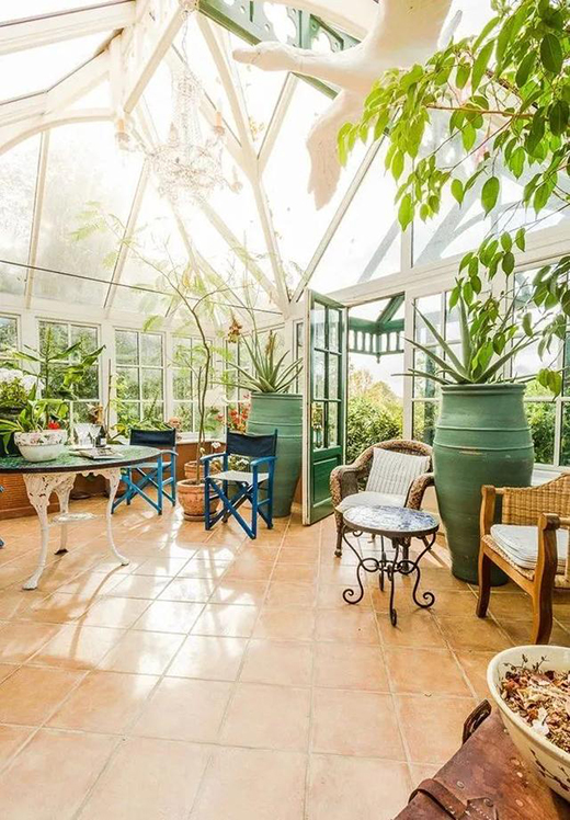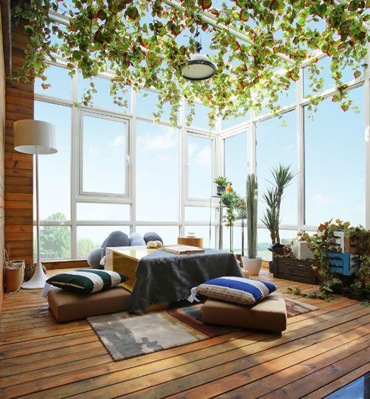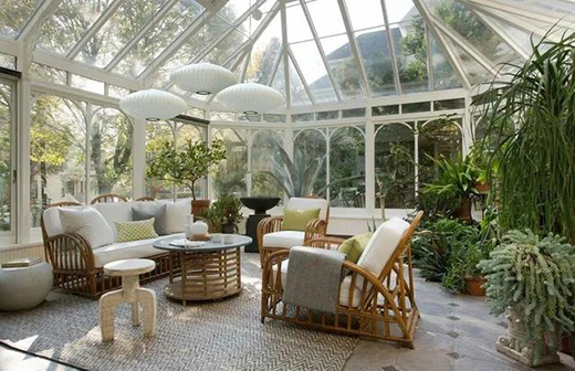 陽光房里種株植物是不錯的選擇,不但可以裝飾,還能凈化空氣,可以選擇種植攀爬的植物形成綠色簾幕,遮擋著烈日直射,起到隔熱降溫的作用,讓陽光房在夏日里形成清涼的小環(huán)境。