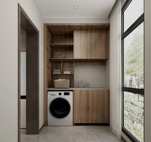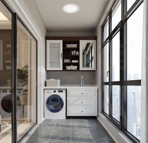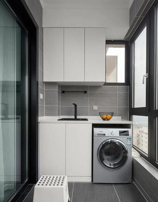 直接選用玻璃門窗進行裝飾,這樣既能采光通風又能起到隔斷效果,無論是作為常規的洗衣區使用,還是作為其它功能使用都是十分適宜的。
