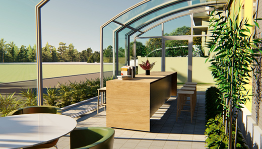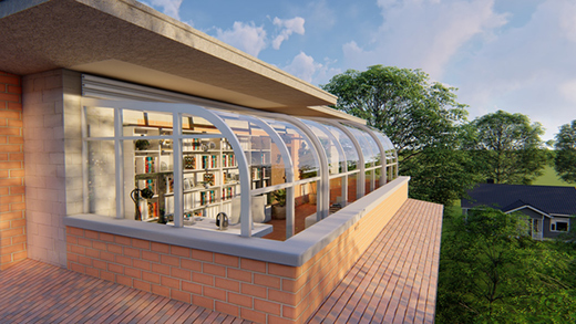 移動陽光房是采用模塊式組合而成的設(shè)計,具備全封閉或全展開的模式。如果室內(nèi)悶熱,業(yè)主可以通過遙控器進(jìn)行一鍵開合整個陽光房,增強空氣對流,降低室內(nèi)溫度。