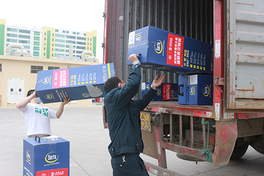 舒達工作人員正在加緊搬運睡眠產品援助物資