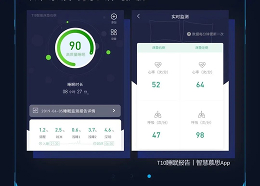 通過領先的偵測技術,慕思T10智能床墊能多維度采集睡眠信息,從而得出睡眠分析報告,讓用戶時刻關注自己與親人的睡眠健康,為用戶提供最佳的睡眠改善方案,真正實現睡眠問題的發現與改善。
