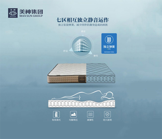 美神在產品品質上有著出色的體驗:“超靜音”的獨立袋彈簧“美神 · 林肯床墊 ”,對身體有著貼合曲線的有效支撐、翻身無干擾、超靜音 等出色睡眠體驗,受到了眾多年輕一族的追捧。而有著強護脊睡眠體驗的“美神 · 布加迪床墊 ”則收獲了眾多青壯年人群的青睞。