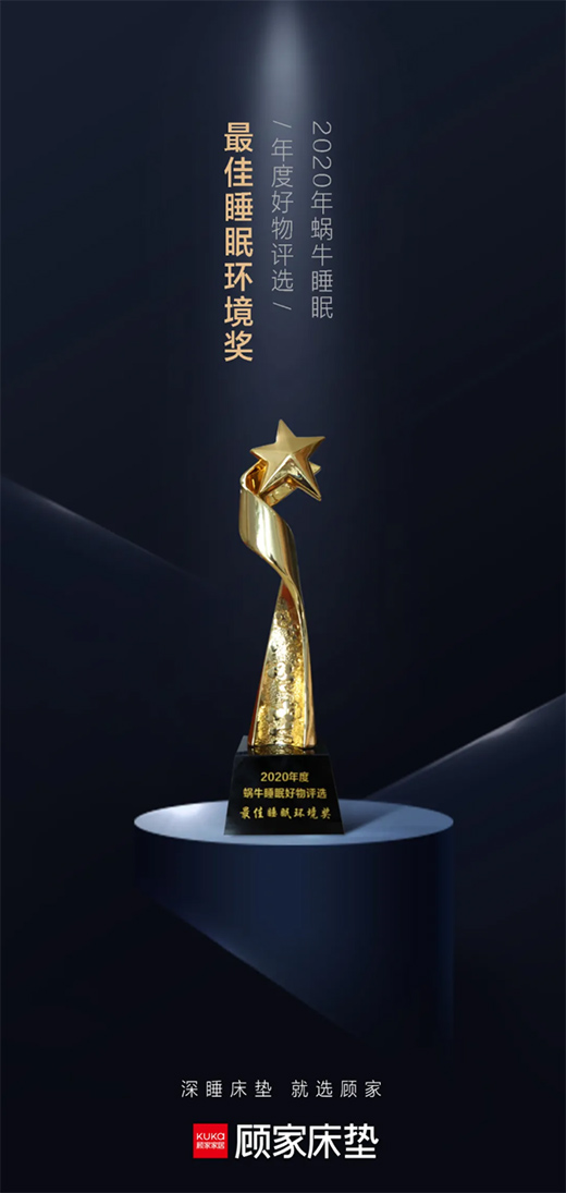 今天,蝸牛睡眠聯合天貓醫藥、阿里健康、養生買手店綜藝欄目舉辦的2020年蝸牛睡眠“年度好物評選”榜單出爐,顧家床墊的IDeep高端系列布魯塞爾(M1806)從上千個睡眠品牌中脫穎而出,獲得年度最佳睡眠環境獎。