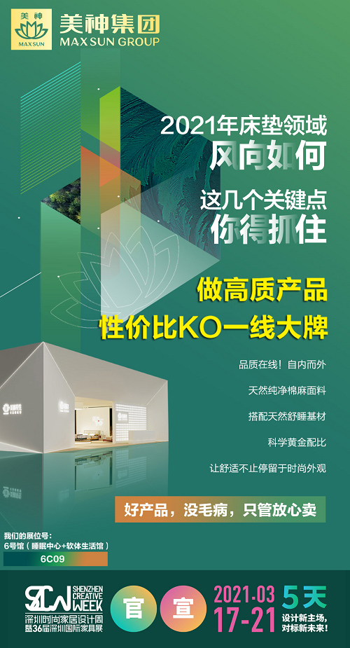 那么,明年的家居市場風向又將變得如何,床墊領域的走向又應該是如何?美神集團為您總結了幾個關鍵點。