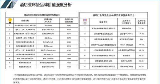 中國(guó)酒店業(yè)2021床墊品牌價(jià)值榜單出爐,舒達(dá)床墊穩(wěn)奪第一