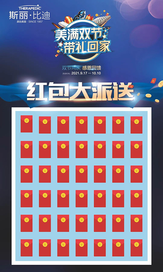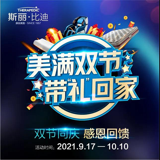 2021下半年的超級驚喜,肯定非“中秋國慶假期接踵而來”莫屬。黃金假期前后,國際知名品牌斯麗比迪床墊,“美滿雙節,帶‘禮’回家”活動即將開啟(9月17日-10月10日),六重驚喜優惠勢不可擋!