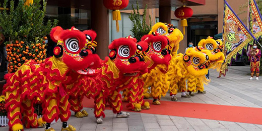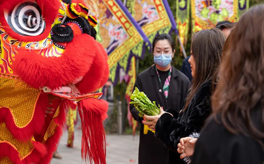 伴隨著陣陣鼓聲,精彩的舞獅節目正式開始。六頭靈巧活潑的“雄獅”在鑼鼓聲中進行了上凳表演、樁陣表演、高桿表演等,走鋼絲、騰空跳等高難度動作輕松完成,引得一片掌聲與歡笑聲。