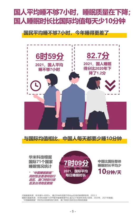 無從打破的睡眠障礙,難以獲得的優質睡眠,成為了大眾的新焦慮。根據《2022國民深睡&運動生活方式白皮書》的數據統計,八成以上國人有睡眠障礙,在2021年一整年中,國人平均睡不夠7小時,實際平均睡眠時長僅為6小時59分,離“睡眠新國標”的及格線僅差1分鐘。