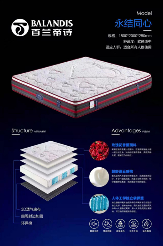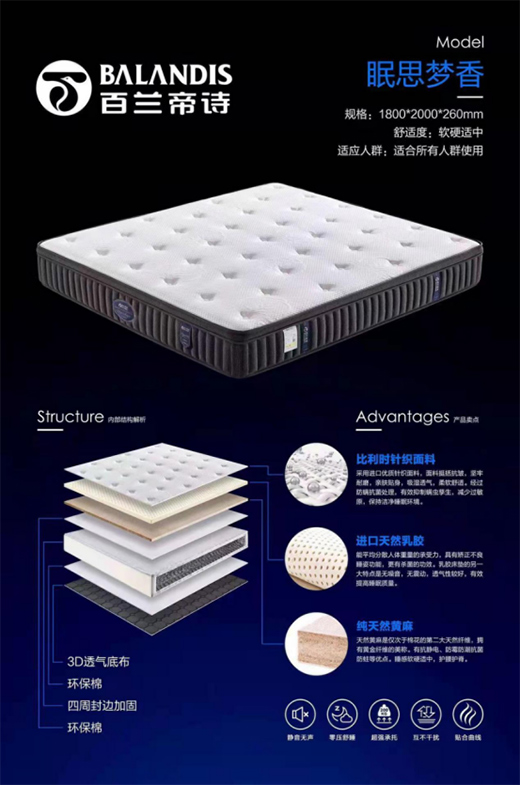作為健康養生睡眠的守護者,百蘭帝詩家居一直在身體力行,為全球消費者提供集“承托、舒適、耐用”于一體的高品質床墊,幫助消費者享受健康、舒適的睡眠體驗,助你一整天精神煥發,活力滿滿!