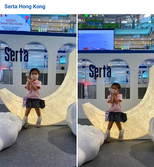 近日,香港荃灣廣場中庭,一位小朋友坐在卡通月牙上,擺出可愛pose,開心得不亦樂乎。