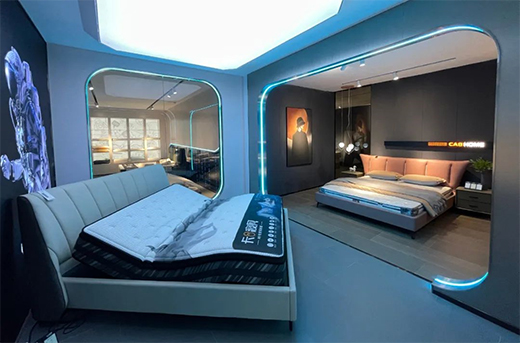 除了產品實力過硬,為了滿足更多消費者的需求,相比以往單純布局床墊產品,卡8家居還打造了綜合式時尚睡眠空間體驗,通過搭配整套成形的臥室空間產品,覆蓋不同的睡眠生活場景,以多種空間搭配方案來增強客群匹配度。同時通過研發、制造、運營等8大優勢賦能經銷商,全力提升經銷商終端門店的整體競爭力。
