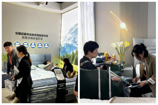 作為倉儲店最專業的床墊配套專家,席夢雅在展會上展示了全拆裝床墊的系列新品,精選全球資源,打造健康睡眠,提供多種睡感、多種定位、多種組合、多種規格、多種材料任意定制服務,不僅滿足了不同消費者的個性化需求,更在舒適度、耐用性和環保性方面達到了行業領先水平。