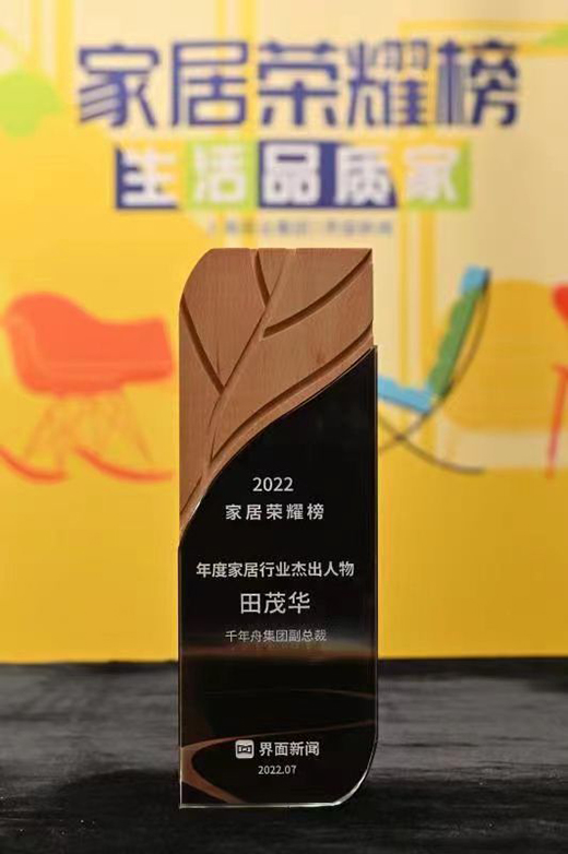 千年舟集團副總裁田茂華憑借對家居行業的杰出貢獻,榮膺「年度家居行業杰出人物」稱號。