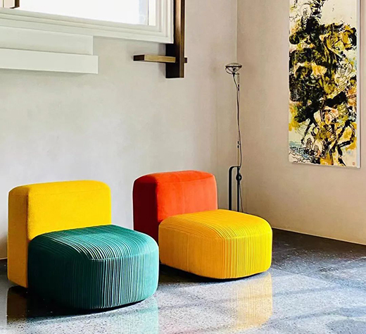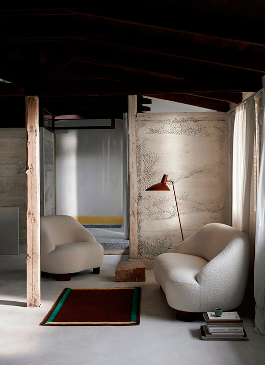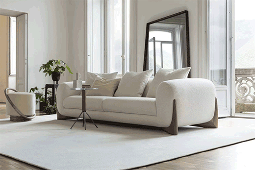 能為消費者帶來安全舒適感的設計,如今也成了軟體家居的趨勢之一。弧形運用的多樣化,讓家具設計更顯圓潤而溫情,配以像羊毛卷這樣,手感飽滿,自然細膩的面料,共同帶來治愈人心的力量。