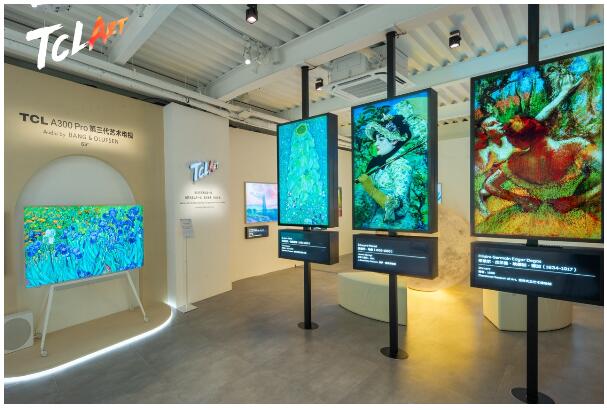 (2F TCLArt世界級藝術畫展展區陳覽的畫作與TCL A300 Pro第三代藝術電視)