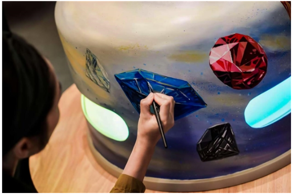 裝置之上,青年藝術家現場即興創作,以一顆顆璀璨奪目的寶石,繪制出一條星光流動的藝術天河,引來觀眾駐足贊嘆。