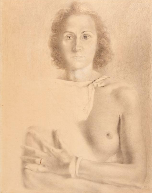 薩爾瓦多?達利的《加拉?加蕾麗娜肖像》(Portrait de Gala Galerina,估價:35萬至45萬英鎊)是一幅少見的鉛筆素描,描繪他摯愛的妻子與繆思——加拉(Gala)。他們的關系既是婚姻,也近乎傳奇,深深影響了達利的創作與人生——在動蕩不安的現實中,她是他唯一的定數,也是他超現實世界中最完美的鏡像。這幅1941年創作的靜謐素描誕生于戰時流亡的背景下,展現了達利對加拉的深情如何使他重新投入嚴謹的美學追求,并專注鉆研拉斐爾、達文西與委拉斯開茲的技法。