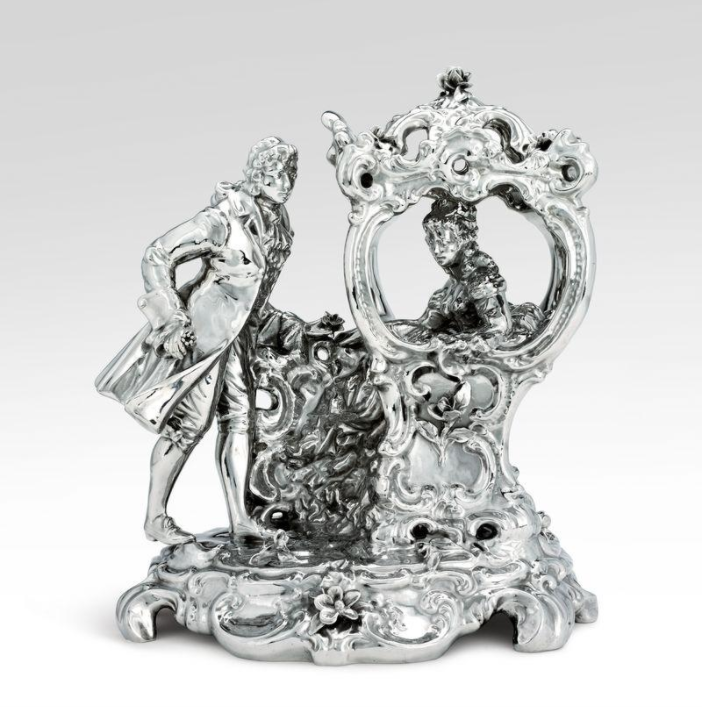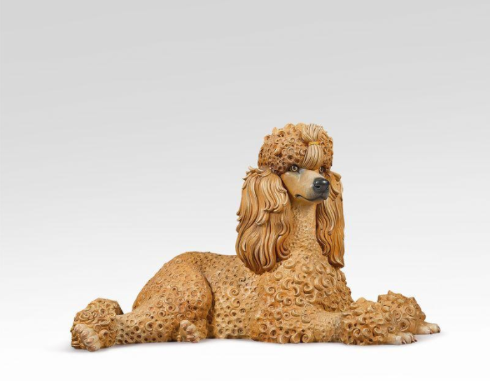 既可愛又詭異的《貴賓犬》(Poodle,估價:100萬至150萬英鎊)多年來安放在保琳的玄關,優雅地藏于萊蘭夫婦的玄關柜下,以其威嚴的獅身人面像姿態和精致的卷毛迎接來訪者。貴賓犬曾是實用的工作犬品種,后來成為法國皇室與貴族的寵愛犬,并被路易十六封為「國犬」。當昆斯創作《French Coach Couple》時,這種品種已成為都市上流社會的一種視覺象征。因此,這座雕塑具有雙重意義:既是狗本身,也是藝術品,兩者皆代表著彰顯成功與階級的文化資本。
