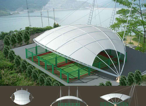 膜結(jié)構(gòu)建筑的突出特點(diǎn)之一就是它形狀的多樣性。由于膜結(jié)構(gòu)曲面所存在著無限的可能性,因此在實(shí)際的建筑創(chuàng)造過程中,可以為豐富多彩的空間體系的產(chǎn)生創(chuàng)造條件。雖然對于氣承式膜結(jié)構(gòu)來說,由于充氣后的曲面制藥是圓球面或圓柱面,而可能沒有太多的選擇余地。但是對于以拉索或骨架支承的張拉膜結(jié)構(gòu),膜結(jié)構(gòu)其曲面就可以隨著建筑師的想象力而任意變化,因此具有廣泛的應(yīng)用可能。