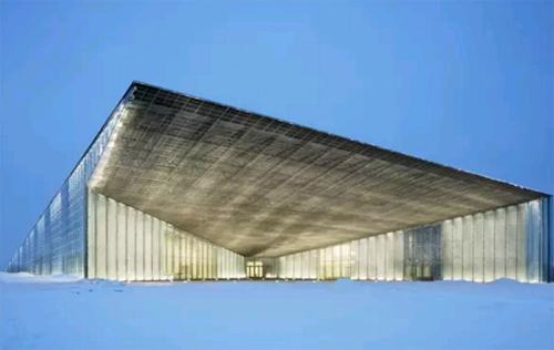 形成了入口門廊同時也為通向展覽室的玻璃走廊形成對景點