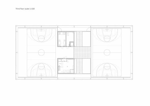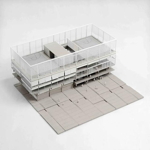 建筑通過垂直組合的方式將各種活動疊合起來,并把屋頂作為全景活動場,供足球和籃球比賽用。