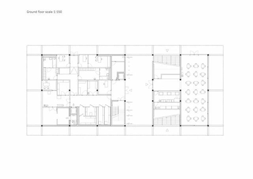 建筑的細節工作被減至最少,以達到低預算的要求。得益于經濟的做法,一個寬敞的公共廣場建造也能被計入造價中,此外還能新建一條人行道與旁邊已有的教學樓連接。垂直的組合方式也讓建筑占地面積做到盡可能小。