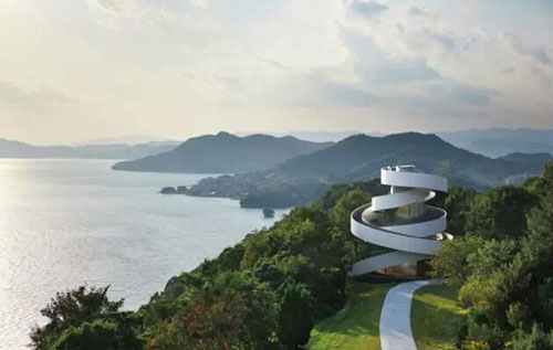 日本廣島絲帶教堂專為婚禮設計,兩個交錯的螺旋樓梯象征了男女的結合。